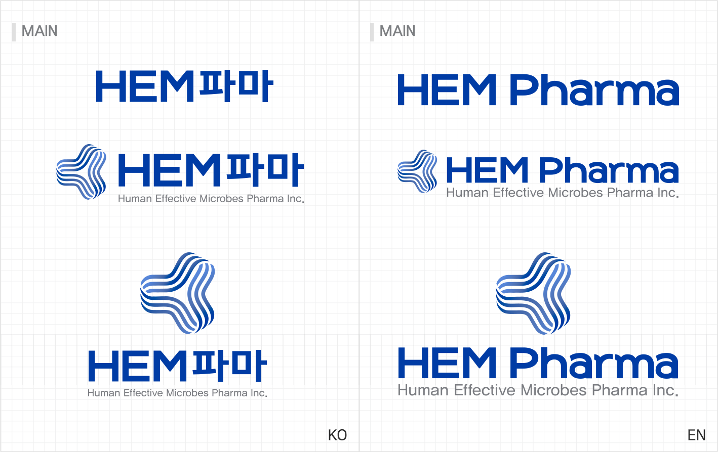 선도적인 기술을 통한 마이크로바이옴의 순환, 유동적으로 흐르는 이미지를 형상화 미생물의 대표적인 라인을 활용하여 나타낸 심볼은 기업분야를 간접적으로 표출 HEM파마 기술의 혁신성과 전문성, 그 이상의 가치를 창출하여 나아가는 기업으로서 스마트하고 혁신적인 기업의 이미지를 형성하는 진취적인 CI